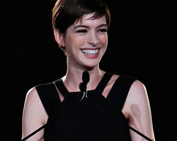 Anne Hathaway, in varsta de 29 de ani, a aparut pe covorul rosu la Women’s Media Awards intr-o rochie neagra, simpla, care i-a dat un aer distins.
