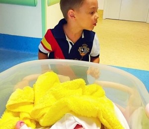 Câteva ore mai târziu, Andra a postat o fotografie pe pagina de Facebook oficială, în care apare bebeluşa, alături de frăţiorul ei, David Măruţă.