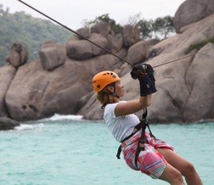 O fire foarte activa, Andreea nu a ratat nici ocazia sa dea niste ture cu tiroliana, peste apa, intre doua stanci.