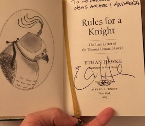 Andreea Esca a postat pe Facebook o fotografie cu volumul semnat de însuşi Ethan Hawke.