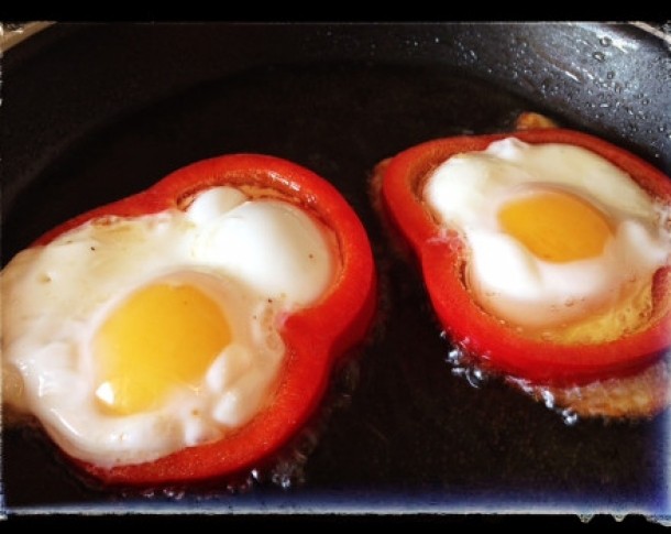 "Stiu, ai savurat deja micul dejun acum multe ore - sau cel putin asa iti doresc sa fi fost. Totusi, s-ar putea sa-ti placa ideea asta simpla si s-o pui in aplicare chiar maine dimineata. Nu dureaza deloc mult sa pregatesti ochiurile in felul asta, iar simfonia de arome merita incercata. Ingrediente: 1 ardei gras (eu am folosit ardei rosu pentru efectul cromatic); 2 oua; condimente (eu am adaugat sare si oregano); paine prajita", a explicat Andreea Ibacka pe blogul ei.