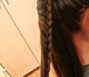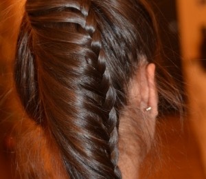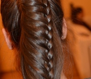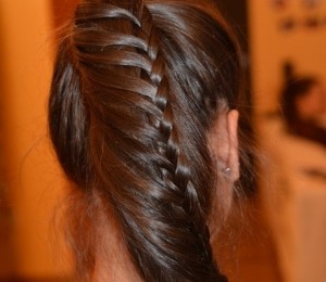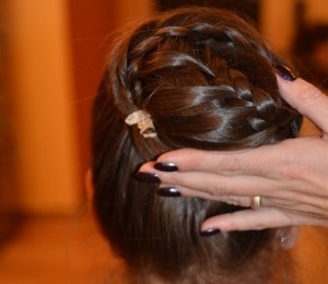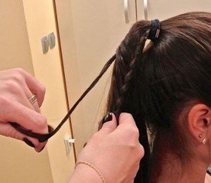 Pasul 5: La sfarsit, dupa ce ai terminat de impletit, tot ce mai ai de facut e sa prinzi tot parul intr-un elastic subtire, lasand impletitura la exterior.