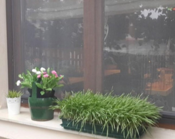 "Buna dimineata! Iata ce frumoasa e iarba de grau de la fereastra mea. E plantata de mine in pamant organic, urmeaza sa o tai, fac sapte portii, una o pastrez pentru a face sucul de azi, iar celelalte sunt pastrate pana le vine randul in congelator. Tema pentru acasa pentru cei ce pretuiesc viata si sanatatea: cititi despre beneficiile extraordinare ale sucului din iarba de grau. Un gand bun!", a marturisit Andreea Marin pe o retea de socializare.