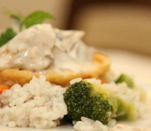 In imagine se poate vedea o portie de orez cu legume.