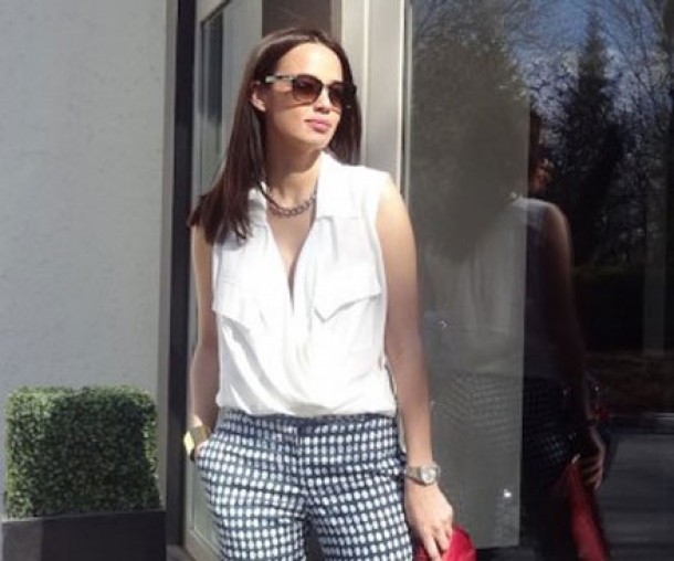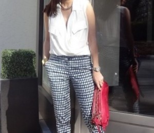 Andreea Raicu ne ofera o demonstratie si a creat o tinuta pe baza acestui model de pantaloni, oferindu-ne totodata o sursa de inspiratie. Astfel, ea a combinat pantalonii tigareta in alb si negru cu o camasa alba. Indrazneste si adu o pata de culoare outfit-ului tau alegand accesorii colorate, Andreea optand pentru o pereche de pantaloni albastri si un plic fucsia. Pentru bijuterii, vedeta s-a limitat la cele din metal, cu linii simple si impletituri si zale.