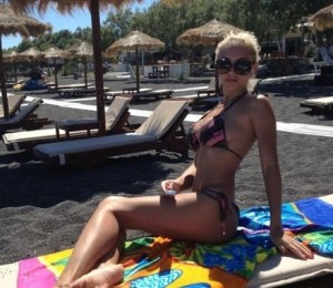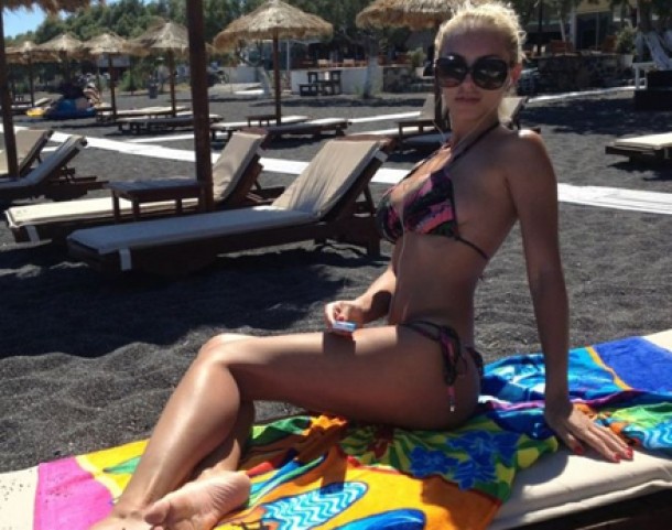 Frumoasa blonda a postat pe contul personal de Facebook o serie de fotografii in care apare intr-un costum de baie minscul, din doua piese care lasa la vedere cat mai multa piele.
