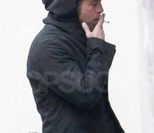 Brad Pitt, surprins in timp ce fumeaza