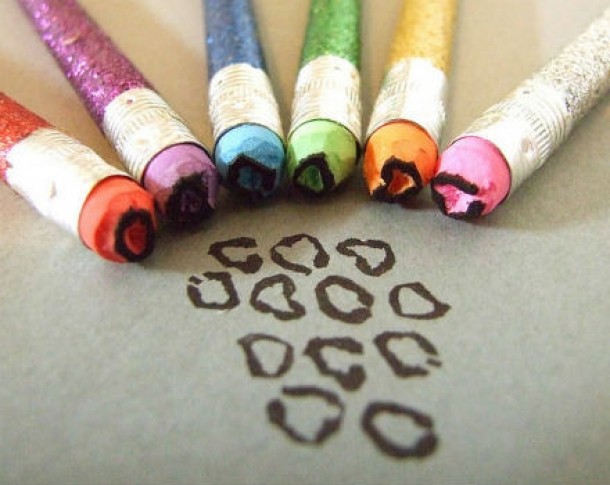 Pentru o astfel de manichiura ai nevoie de: un creion cu guma de sters in capat, un cutter si oja neagra.
