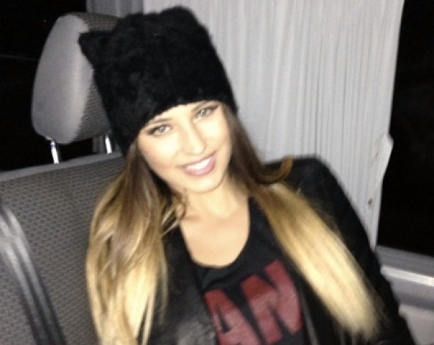 Antonia apare in imagine imbracata casual, un tricou si o geaca de piele, in timp ce poarta pe cap o caciula haioasa, din blana si cu urechiuse.