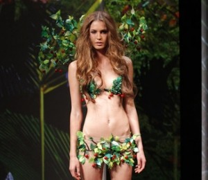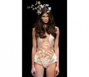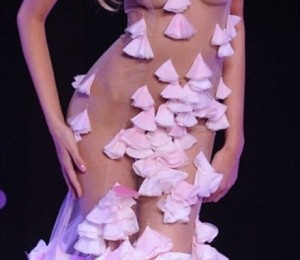 In incheierea prezentarii, Zahia a defilat intr-o creatie proprie, o rochie facuta din petale care ii expunea corpul in toata splendoarea.