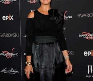Actrita in varsta de 47 de ani purta o rochie neagra superba, pe care a accesorizat-o cu o pereche de pantofi negri si un plic de aceeasi culoare.