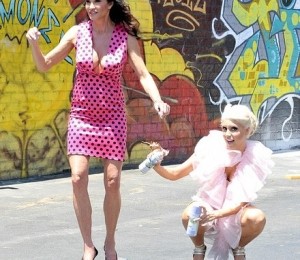 Outfitul nu a fost deloc unul potrivit si comportamentul sau a dezamagit de asemenea. Fostul model a luat parte la filmarile pentru noul videoclip al artistei Sammi Benz si s-a dat in spectacol. Incaltata cu pantofi cu toc, aceasta a incercat sa mearga pe skateboard, dupa care a fost surprinsa retusandu-si machiajul.