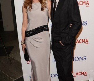 Actrita in varsta de 49 de ani a purtat o rochie lunga, din matase de culoare taupe, cu un detaliu negru in talie care ii evidentia mai bine silueta.