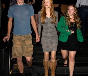 Tanara actrita se pare ca isi doreste cu ardoare sa para mai matura decat este si a imbracat o rochie gri, foarte mulata, care ii sublinia silueta slaba. A purtat rochia cu o pereche de cizme maro pana la genunchi, iar machiajul si coafura erau impecabile, demne de o diva, dar total inutile.