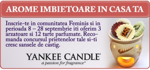 Feminis si Yankeeland iti dau posibilitatea sa-ti parfumezi locuinta cu cele mai faimoase arome din lume, aromele Yankee Candle.