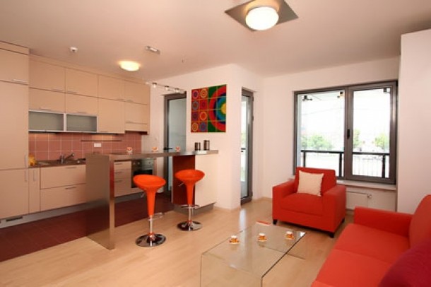 Tema evenimentului a fost prepararea unor retete care sa se plieze conceptului de apartament de doua sau trei camere. In locuinta de doua camere, unul dintre bucatari a pregatit o salata multicolora (cu dovleac, busuioc, rucola, parmigiano, prosciuto, baghete cu feta, cirese asezonate cu lime, sare de mare si piper), ideala, spun ei, pentru un tanar cuplu de indragostiti, pregatiti pentru a-si inaugura noua casa.
