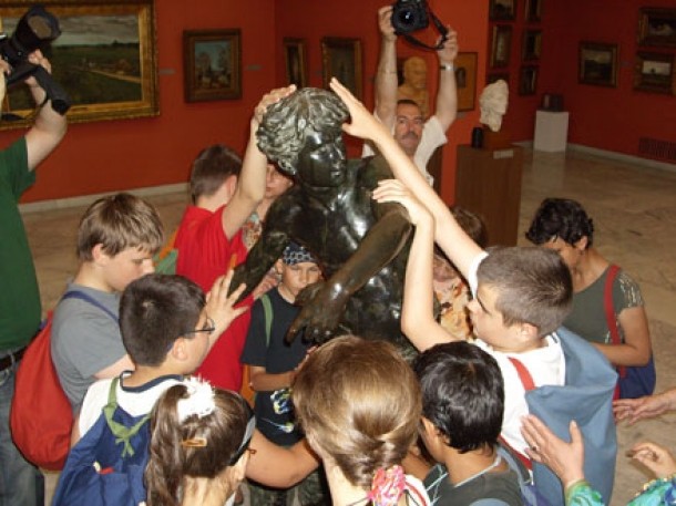 Desi de obicei acest lucru nu este permis, copiii au avut voie sa atinga si sculptura "Rugaciune" a lui Constantin Brancusi.