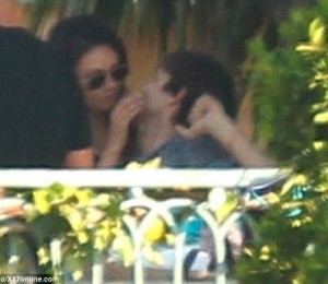 Mila Kunis si Ashton Kutcher au fost surprinsi intr-o ipostaza extrem de apropiata. Actrita statea in bratele lui Ashton si cei doi au fost chiar surprinsi sarutandu-se.