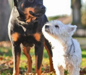 Joey, un Westie simpatic, s-a indragostit de Zara, o catelusa din rasa Rottweiler, la putin timp dupa ce s-a mutat, impreuna cu stapana sa Teresa Patterson, in noua lor resedinta din North Yorkshire.
