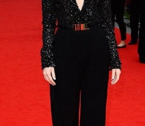 Aceasta a purtat o pereche de pantaloni negri si un top de aceeasi culoare care avea un decolteu mai mult decat generos. Croiala topului a lasat la vedere suficienta piele incat sa ii asigure actritei o prezenta care nu poate trece neobservata.