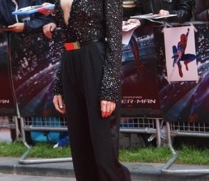 Partenerul de film si iubitul in viata reala, actorul Andrew Garfield, abia si-a putut lua ochii de la decolteul iubitei lui si a fost surprins la un moment uitandu-se insistent la sanii actritei. Emma a parut usor stanjenita de gestul sau, din fericire actorul Rhys Ifans care ii insotea pe covorul rosu a reusit sa il dezlipeasca pe actor de iubita lui cat sa poata poza pentru fotografi.