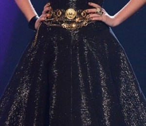 Nicole Scherzinger, insa, a ales sa poarte o rochie foarte scurta si decupata, din plastic, dorind sa obtina o imagine sexy. Din pacate, rochia futurista, cu elemente transparente, nu a avut efectul scontat, cantareata fiind eclipsata de colega ei de platou.