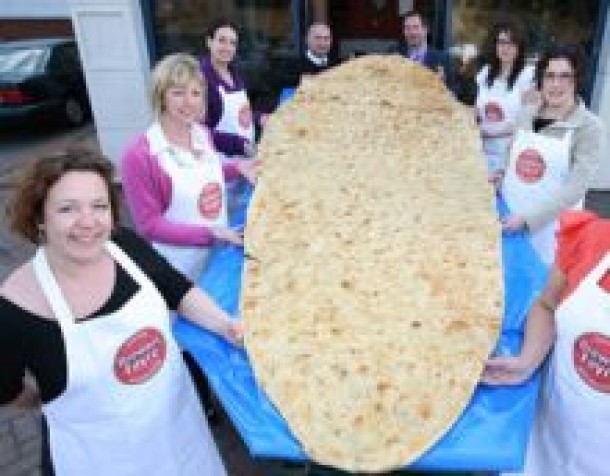 Bucatarii de la "Honeytop Speciality Foods" au realizat cea mai mare lipie indiana din lume - "naan bread".