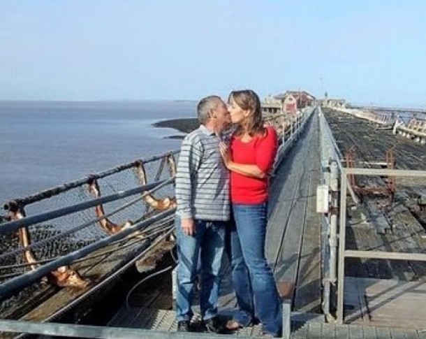 Hazel Preller, in varsta de 43 de ani, si Jay, sotul in varsta de 55 de ani, au petrecut doi ani vizitand peste 60 de pontoane din Marea Britanie si oferindu-si sarutari de neuitat la capatul fiecaruia dintre ele.