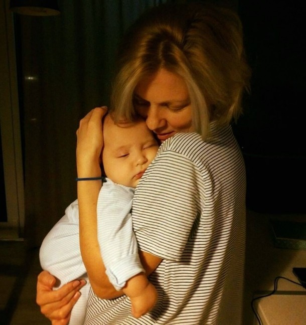 "E veselie mare în casă. După ce Dragoş şi Sofia au plecat (el la birou şi ea la şcoală) am rămas noi doi să "ne facem de cap" :) După o partidă serioasă de râs el a cedat şi, cât îşi face somnul de frumusete, eu scriu mailuri şi poveşti şi...v-arăt vouă ce băiat chipeş am! Face fix şase luni azi :) A? Şi părul şi mustaţa i-au crescut deja! Creşte ăsta micu' în şase luni cât alţii în şaişpe ani :)", a scris Dana Nălbaru în această dimineaţă pe pagina oficială de Facebook.