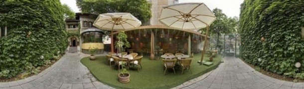de cutreierat mall-uri, nu am chef pur si simplu cam de nimic. Fac stanga si ma indrept spre statia de tramvai. O amintire imi pune piedica si-mi schimba directia.Privesc inapoi catre o alta vara. Da,da, aici era. Acelasi gard verde si inalt, aceiasi alee ducand spre usa cu vitralii.Terasa insa