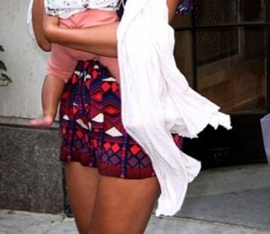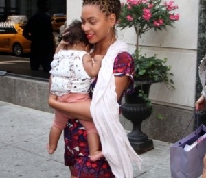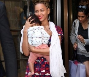 Imbracata casual, intr-o tinuta compusa dintr-un jumpsuit cu imprimeu geometric si o pereche de balerini aurii, artista a tinut-o tot timpul stransa la piept pe fetita ei in varsta de 6 ani, oferind astfel primele cadre cu aceasta. Atat Beyonce cat si Jay-Z au evitat sa isi arate fetita paparazzilor si de fiecare data cand ieseau in oras se asigurau ca ii ascundeau cat mai bine chipul.