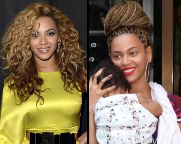 Beyonce i-a surprins pe paparazzii veniti sa o intampine la iesirea in oras cu fetita ei Blue Ivy cu un look diferit. Cantareata in varsta de 30 de ani a adoptat o coafura afro si si-a impletit parul in codite subtiri. Aceasta coafura aminteste foarte mult de look-ul artistei cand facea parte din formatia Destiny's Child, cand obisnuia sa isi poarte parul la fel impletit.