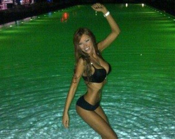 Bianca apare in fotografie la o piscina, imbracata intr-un costum de baie minuscul care ii lasa la vedere silueta mult prea slaba.
