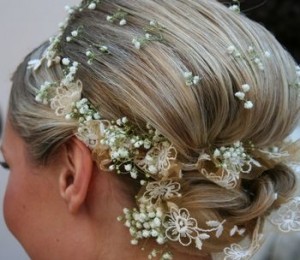 Floarea pentru păr este o bijuterie DIY de care ai neapărat nevoie în ziua cea mare. Poţi opta pentru o floare din material alb care să inspire puritate şi inocenţă, iar în mijloc să îi lipeşti o mărgea albastră pentru a bifa şi "ceva albastru" în ziua nunţii. Aceasta este un accesoriu pentru păr care poate fi realizat foarte uşor şi poate fi prinsă atât în coafurile complexe, cât şi în cele mai simple.