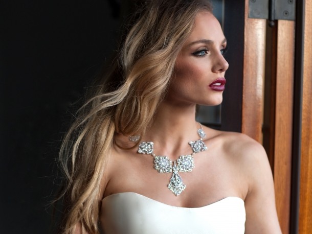 6. Asortează bijuteriile cu materialul rochiei - culoarea bijuteriilor ar fi bine să fie aleasă în funcţie de culoarea rochiei. La o rochie ivoire se potrivesc de minune bijuteriile aurii, în timp ce la una albă ai face bine să porţi bijuterii din aur alb sau cu perle.