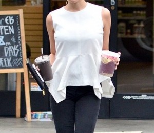 La doar 3 saptamani, aceasta postat pe contul personal de Twitter o fotografie in care aparea intr-o rochie scurta. Acum, aceasta a fost surprinsa in timpul unei iesiri in ora si a facut din nou senzatie. Actrita in varsta de 25 de ani purta o tinuta la care proaspetele mamici nu poate decat sa aspire. Frumoasa blonda si-a etalat silueta intr-o perche de jeansi skinny si un top alb, un outfit ce ne face greu de crezut ca tocmai ce a nascut.