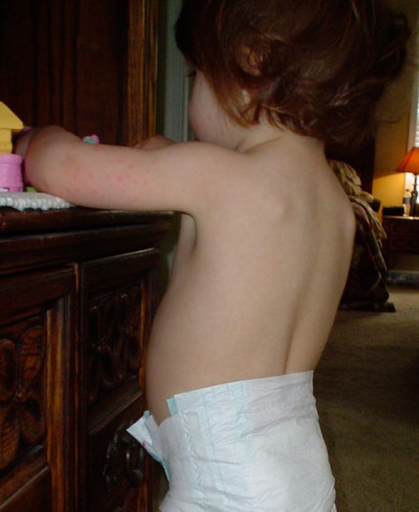 Eruptia se poate extinde si pe gat sau, mai rar, pe membre si pe fata. Acest tip de rash poate dura la randul lui intre cateva ore si cateva zile. Din fericire bubitele nu sunt dureroase sau deranjante, iar contactul cu ele nu este contagios.