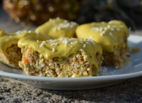 6. Se răstoarnă conținutul bolului pe un tocător și se îndepărtează ușor folia alimentară, apoi se feliază și se servește.