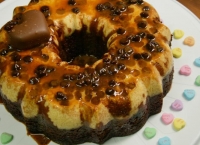 3. Se amestecă într-un alt castron mare crema de brânză cu zahărul, până ce acesta se topește și la sfârșit de combină cu amestecul din fursecuri muiate și se adaugă chipsurile de ciocolată.