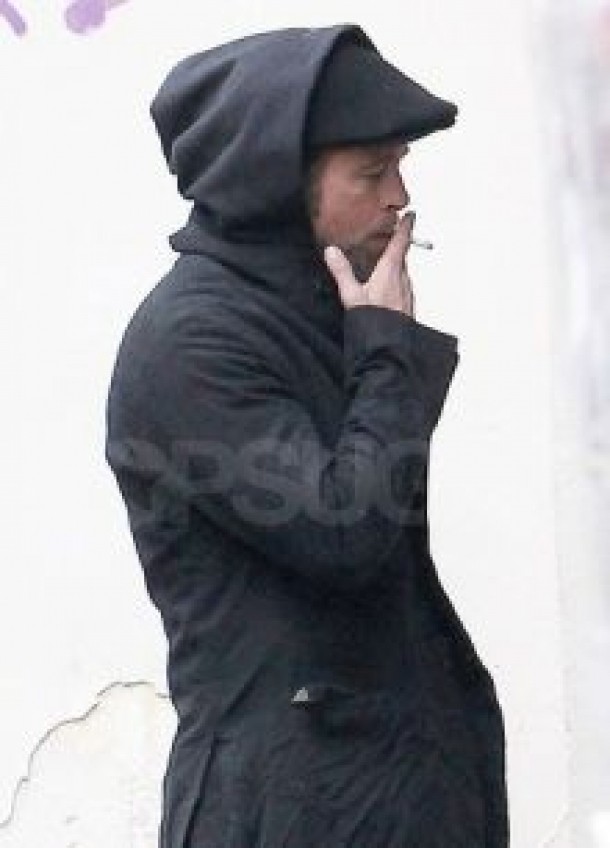 Actorul Brad Pitt, despre care se stie ca se ascunde de Angelina atunci cand isi aprinde cate o tigara, a fost filmat in  timp ce fuma, aflat intr-o plimbare prin Paris.