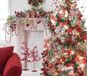 Beteala in nuante deschise contrasteaza cu globurile in nuante de rosu, dand impresia ca in bradul de Craciun stau atarnate fructe de padure felurite.