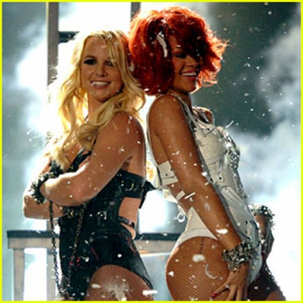 Alaturi de ea, intr-o versiune non-angelica, a aparut pe scena Britney. Cele doua au colaborat pentru un remix, noul hit al momentului. Aceasta a fost imbracata in varianta opusa a Rihannei: intr-un spandex negru cu o masca negra, mare.