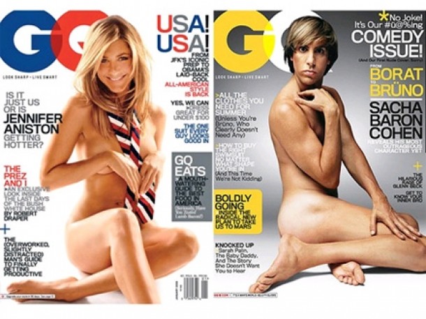 Va mai amintiti de scandaloasa aparitie a starletei Jennifer Aniston pe coperta revistei GQ, unde purta numai o cravata? Se pare ca Bruno a incercat sa apara si mai scandalos de atat. Ce cravata? Mai bine nimic.