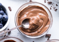 4. Se împarte zmeura rămasă în două pahare de sticlă, peste care se adaugă restul de budincă din semințe de chia, apoi se pune în mod egal mousse-ul de ciocolată.