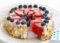 5. Se scoate tava din cuptor și se stropește conținutul cu sirop de arțar, se taie pătrățele și se servește caldă.