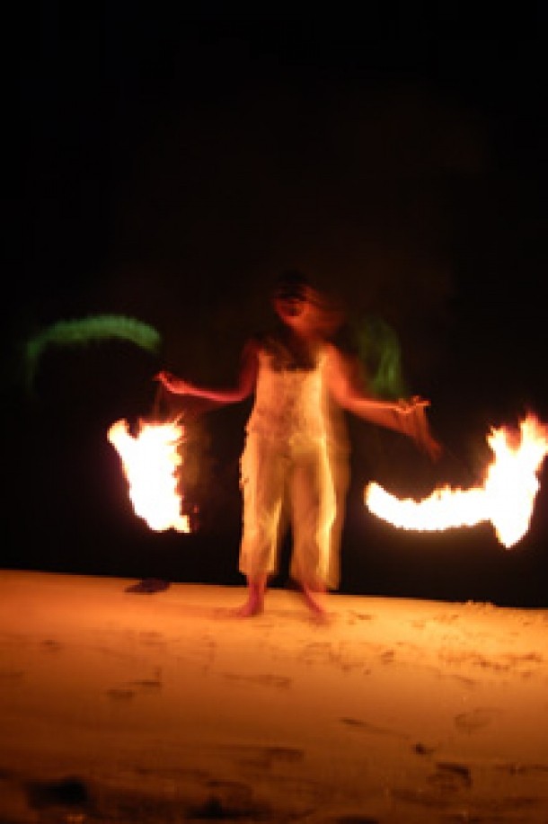 Pe gratar sunt puse ceva languste si ceva creveti prinsi acum cateva ore, doar ceva zeama de lime deasupra si fetele care servesc ofera si un spectacol feeric. O jonglerie cu candele aprinse la capatul unor lantisoare. Ele danseza, jongleaza cu aceste lumini si efectul e magic. Va tineti de mana, va priviti si daca aveti si un riesling sau chardonnay australian rece de tot in pahare va spun eu ca ......mai bine nu prea se poate.