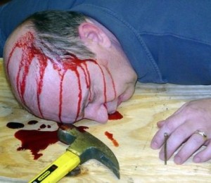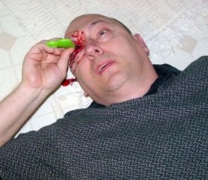“A inceput ca o gluma, locuim intr-o zona unde nu sunt prea multe oportunitati. M-am gandit: “Nu ar fi cool sa apar la TV? Cum as putea face asta fiind un nimeni.” Am avut un vis in care eram un cadavru din Lege si Ordine. M-am trezit si mi-am dat seama: nu ai nevoie de talent ca sa faci pe mortul! Asa ca Tonya a facut sange fals si a inceput sa ma fotografieze. Ea este creierul din spatele acestei operatiuni, eu sunt doar bucata de carne care asteapta sa fie macelarita.”