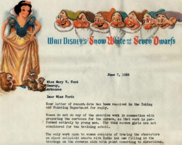 Singura activitate disponibila pentru femei consta in trasarea/desenarea personajelor pe foi de celuloid transparent cu cerneala indiana si umplerea contururilor pe verso cu vopsea, conform instructiunilor.