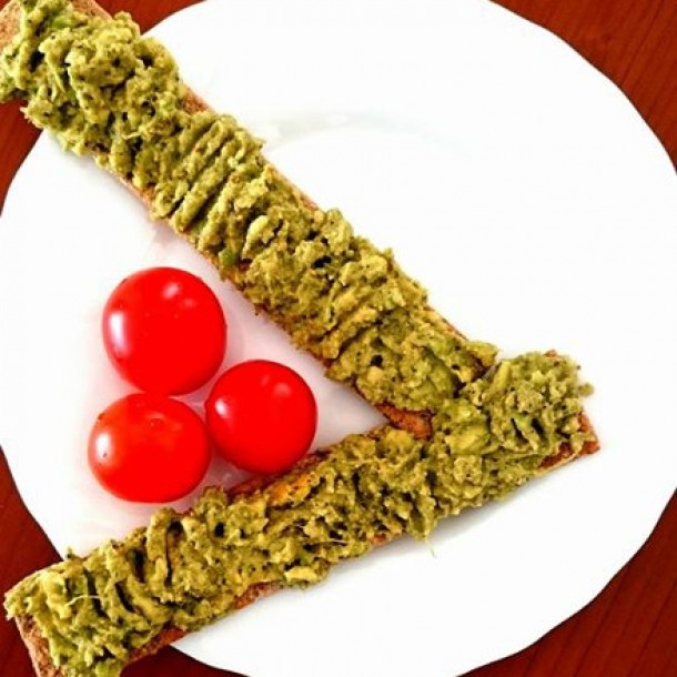 "Gustare hranitoare sub 100 de kcal. Ingrediente: 2 linguri de avocado, 1 lingurita pudra proteica din canepa, sare, zeama de lamaie, crackers din faina integrala, rosii", a scris Carmen Bruma astazi pe pagina oficiala de Facebook alaturi de o fotografie sugestiva.