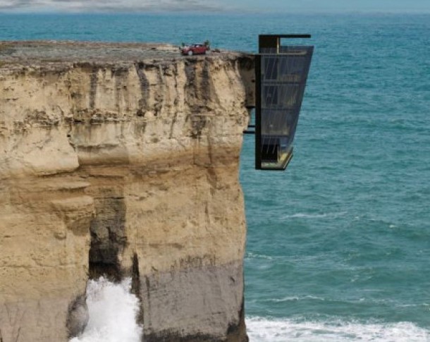 Firma angajata a produs acest concept pentru designul casei celor doi: o locuinta care atarna pe marginea prapastiei, oferindu-le locuitorilor o vedere panoramica si poate chiar o vedere infricosatoare asupra oceanului.